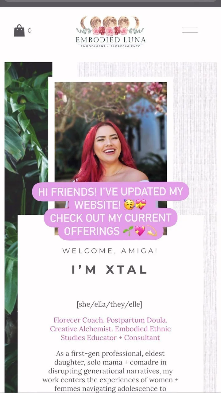 Florecer Coach. Postpartum Doula. Creative Alchemist + Storyteller. Embodied Ethnic Studies Educator + Consultant